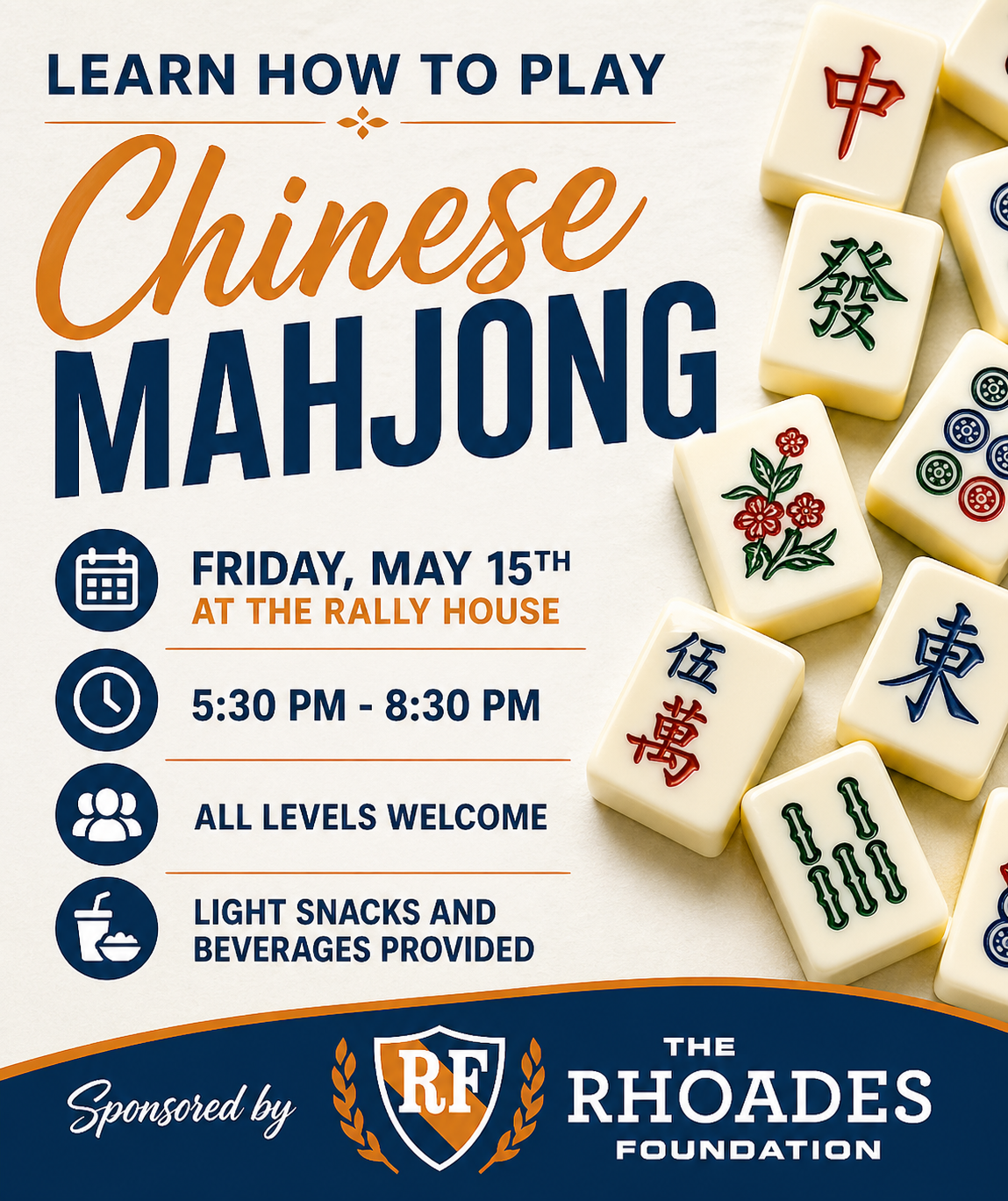 Please join us the evening of Friday, May 15th for Chinese Mahjong! All levels are welcome!